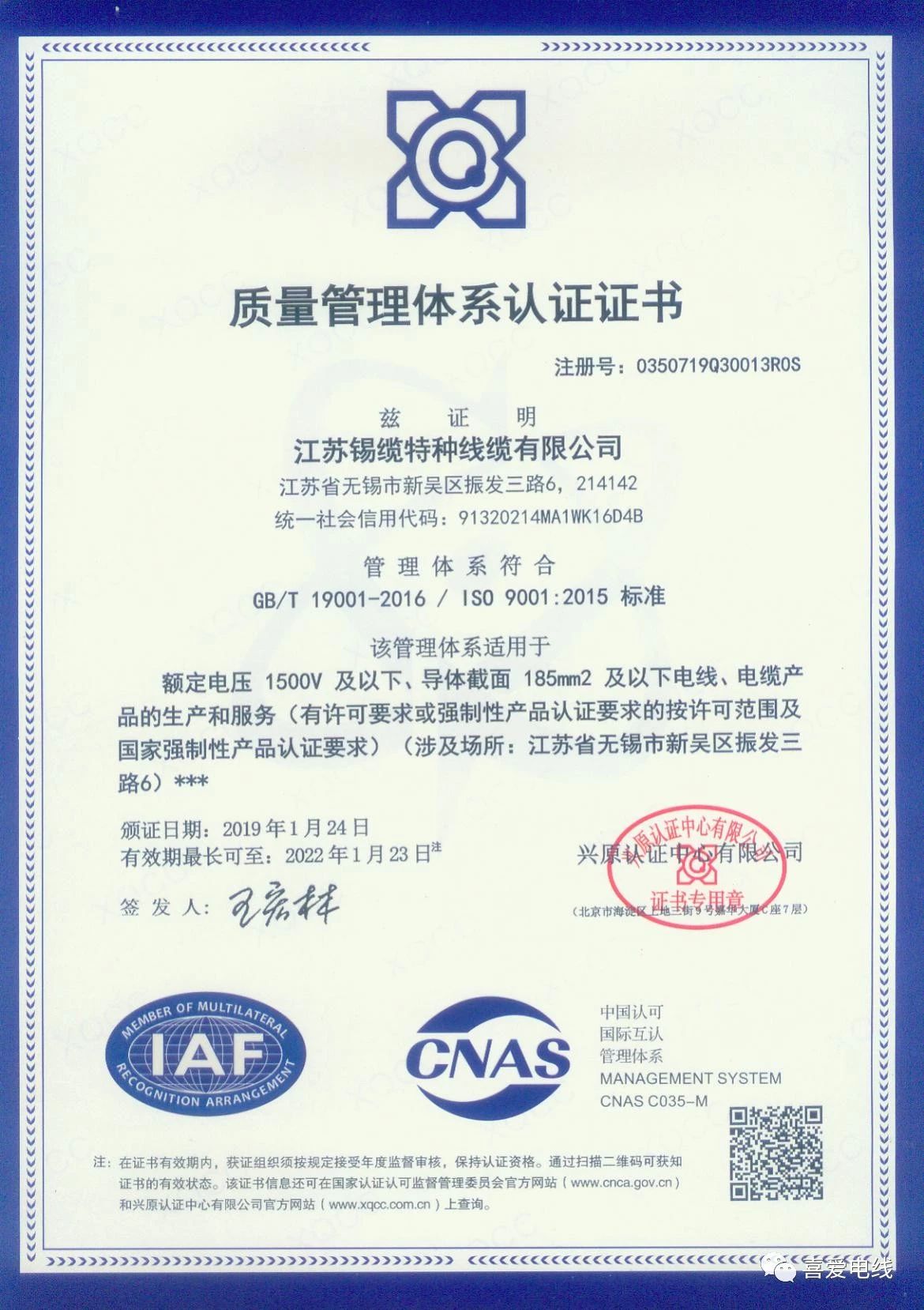 質(zhì)量管理體系認(rèn)證證書